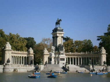 Náš druhý deň v Madride sme sa rozhodli začať prechádzkou v rozľahlom Parque del Retiro, kde uvidíte záhrady plné kvetín, prekrásne fontány aj sochu Padlého anjela, vraj jedinú svojho druhu na celom svete. Využili sme možnosť člnkovania pomedzi skupinky kačiek v miestnom jazierku a následne popri bráne Puerta de Alcalá pokračovali po ulici Calle de Alcalá až k Plaza de Cibeles, ktorej dominuje krásna fontána a impozantný snehobiely Palacio de Comunicaciones.